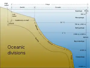 چهار نوع ناحیه اقیانوسی وجود دارند: ناحیه نورخورشیدی، ناحیه گرگومیش، ناحیه باتیال و ناحیه مغاکی.