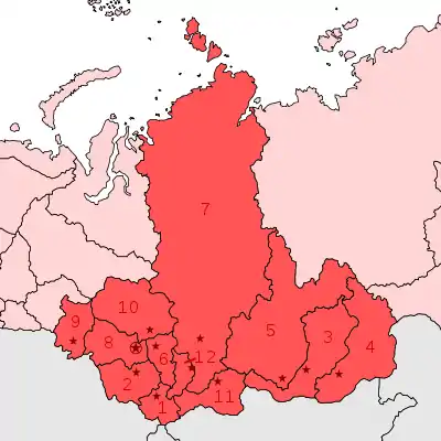 | Federal subjects | 12 contained |