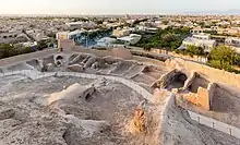 نارین قلعه شهر میبد - تصویری از بالای قلعه به سمت پایین و ضلع غربی
