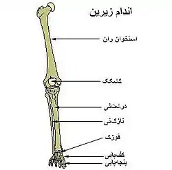 کمی بالاتر از سقف درشتنی، استخوان نازکنی در یک فرورفتگی مقعر که در سطح خارجی استخوان درشتنی است قرار گرفته و مفصل درشتنئینازکنئی زیرین را میسازد که به آن بند (سندسموز) درشتنئینازکنئی هم میگویند.