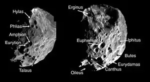 پدیدهههای جغرافیایی دیگر قمرها قرار است پس از کشف، به نام ایزدان و ایزدبانوهای افسانههای نپتون و پوزئیدون نامیده شوند.