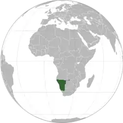 جمهوری نامیبیا[11] کشوری است واقع در جنوب آفریقا، شمال غرب آفریقای جنوبی، غرب بوتسوانا، جنوب آنگولا و در کنار ساحل اقیانوس اطلس جنوبی. پایتخت نامیبیا، شهر ویندهوک[12] (با ۲۳۳،۵۲۹ نفر جمعیت میباشد. مساحت نامیبیا ۸۲۵٬۴۱۸ کیلومتر مربع و جمعیت آن ۱٬۸۲۰٬۱۹۰ نفر است.