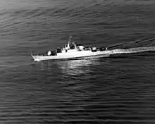 | سرعت | ۱۷ گره دریایی (۳۱ کم) با موتور دیزلی ۳۹ گره (۷۲ کم) با توربین گاز | |