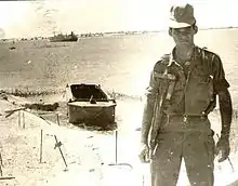 در پسزمینه تصویر یک کشتی لنگرانداخته در کانال سوئز که قادر به ترک آن نیست قابل مشاهده است (سال ۱۹۷۳)