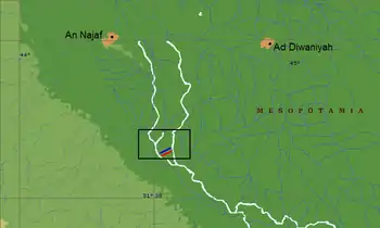 ![]() Overview of the region where the Battle of Ullais was fought, showing the river Euphrates and its tributary the Khaseef (عراق) | |||||||