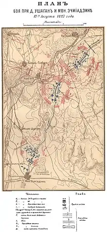 در اوایل ماه اوت سال ۱۸۲۷، ارتش ایران به ارمنستان شرقی حمله کرد و همراه با نیروهای خانات ایروان سردار حسین خان سردار ایروانی، صومعه اچمیادزین را محاصره کرد. در ۳۵ مایل از اچمیادزین، یگان نظامی روسیه ستوان کراسوفسکی به همراه داوطلبان ارمنی و گرجی که به وی پیوستند، به یاری صومعه محاصره شده رسیدند و با وجود برتری عددی ده برابر ارتش ایران [1]، توانستند خطهای دفاعی ایران را بشکنند. شب که محاصره برداشته شد [2]. در طول نبرد، یگان روسی متحمل خسارات سنگینی شد. این بزرگترین خسارت ارتش روسیه در تمام جنگها با ایران بود [3] [4].