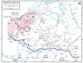 ارتش آلمان با عبور از خاک بلژیک و هلند به صورت غافلگیرانهای از پشت خطوط ماژینو سردرآورد و عملاً ارتشهای فرانسه و بریتانیا در شمال غرب آلمان را غافلگیر کرد. با این یورش ۴۰۰ هزار سرباز بریتانیایی و فرانسوی از سپاههای اصلی فرانسوی جداافتاده و درمحاصره کامل آلمانیها گرفتار شدند. ارتش آلمان با روحیه بسیاربالا در حال درهم کوبیدن مواضع متفقین به سرعت در حال نزدیک شدن به نیروهای شکست خورده انگلیس بود. این نیروها برای فرار از مرگ به سوی دانکرک (جایی که فاصله خاک اروپا و بریتانیا درحداقل ممکن است) عقبنشینی کردند.