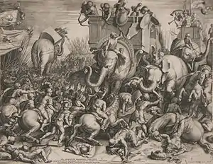 ۴۰٬۰۰۰: ۳۶٬۰۰۰ پیادهنظام ۴٬۰۰۰ سوارهنظام ۸۰ فیل جنگی[1] |