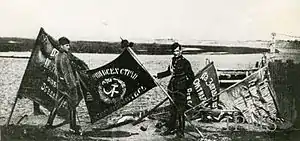 ![]() سربازان لهستانی در حال نشان دادن پرچمهای ارتش سرخ پس از پایان نبرد | |||||||