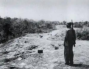 ![]() یک تفنگدار آمریکایی پس از نبرد در نزدیکی برخی از مواضع جنگ در تپه ۱۲۳ واقع در پشته «ادسون» ریج ایستادهاست. فرماندهی و کنترل ادسون در طول نبرد درست در سمت راست محل تفنگداران دریایی قرار داشت. | |||||||