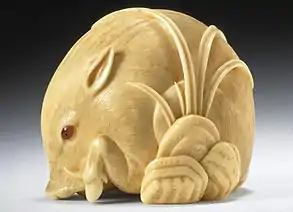 - دندان گراز دریایی: گراز دریایی دارای دو دندان نیش کشیدهاست که از فک بالا به سمت پایین بیرون میآیند. طول این درازدندانها اغلب به دو فوت میرسند و قرنهاست که در بسیاری از کشورها و به ویژه در ژاپن به صورت عاج تراشیده شدهاست. کندهکاری دندان گراز دریایی معمولاً آسان است، زیرا قسمت اعظم فضای داخلی دندان با مادهای خالدار و نیمهشفاف پر شدهاست که نسبت به بقیه دندان سختتر و مقاوم در برابر کندهکاری است. نِتسوکه مانجو، به ویژه نِتسوکه رایسا، این ماده نیمهشفاف را در لبههای مخالف نِتسوکه نشان میدهد.