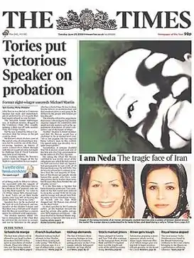تایمز لندن ندا آقاسلطان را به عنوان فرد سال ۲۰۰۹ برگزید.[67]