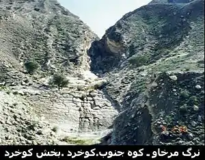 نرگ در گویش لارستانی به ویژه در گویش کوخِردی در بخش کوخرد شهرستان بستک به معنی هر شکافی بزرگ میان رشته کوههای بلند است. این شکاف را «نرگ» مینامند. نرگ درهای است بسیار عمیق بین سلسله کوهای بلند که در آن پرتگاهها و آودونها و اشکفتها و شیب وفرازهای گوناگونی وجود دارد، در بعضی از نرگها بیشهزارها و درختهای برکو (بنه) و بادام کوهی و انجیر نیز وجود دارد، احیاناً در این جنگلها جانوران و درندگان نیز جا میگیرند. معمولاً راههای نرگها ناهموار است و گذر به درون نرگها به دشواری صورت میگیرد.