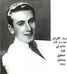 ![]() قبانی دانشجوی حقوق دانشگاه دمشق در سال۱۹۴۴ | |