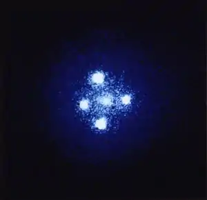 - Walsh, D.; Carswell, R. F.; Weymann, R. J. (1979), "۰۹۵۷ + ۵۶۱ A, B: twin quasistellar objects or gravitational lens?", Nature, ۲۷۹ (۵۷۱۲), p. ۳۸۱, Bibcode:1979Natur.279..381W, doi:10.1038/279381a0, PMID 16068158