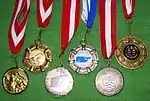 نشان یکی از جوایز انواع مسابقهها است، در مسابقات ورزشی از زمان رم باستان دادن نشان مرسوم بودهاست. نشانها از طلا، نقره، برنز، مس، و مفرغ بوده و سابقه آن به داستان سامانه سه دورهای* اساطیر یونانی برمیگردد.