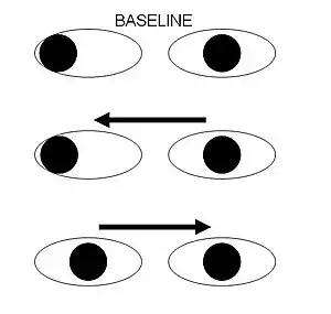 | بیان تصویری مشکل ایجاد شده در دو چشم در اثر نشانگان یک و نیم. |