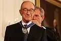 آلن گرینسپن در حال دریافت مدال در سال ۲۰۰۵