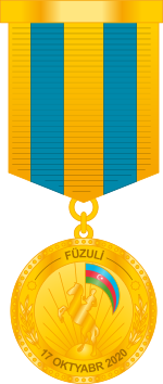 - "Vətən Müharibəsində qələbə münasibətilə Azərbaycan Respublikasının orden və medallarının təsis edilməsi ilə əlaqədar "Azərbaycan Respublikasının orden və medallarının təsis edilməsi haqqında" Azərbaycan Respublikasının Qanununda dəyişiklik edilməsi barədə AZƏRBAYCAN RESPUBLİKASININ QANUNU" [LAW OF THE REPUBLIC OF AZERBAIJAN on amendments to the Law of the Republic of Azerbaijan "On the establishment of orders and medals of the Republic of Azerbaijan" in connection with the establishment of orders and medals of the Republic of Azerbaijan on the occasion of victory in the Great Patriotic War] (به ترکی آذربایجانی). مجلس ملی جمهوری آذربایجان. 20 November 2020. Retrieved 22 November 2020.