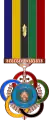 روبان این نشان از نواری با پنج خط عمودی مساوی قرمز، سبز، مشکلی، زرد و آبی رنگ تشکیل شده و روی آن یک پلاک دایره ای شکل از نشان رسمی جمهوری اسلامی ایران نصب شدهاست.