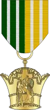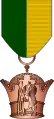 این نشان توسط حلقه ای به روبانی وصل میباشد که به ترتیب برای درجه یک: نواری با سه خط عمودی سبزرنگ پهن، سه خط عمودی زردرنگ پهن و چهار خط عمودی سفید رنگ باریک؛ برای درجه دو: نواری با دو خط عمودی سبزرنگ پهن، دو خط عمودی زردرنگ پهن و دو خط عمودی سفید رنگ باریک؛ و برای درجه سه نواری با دو خط عمودی سبز و زردرنگ پهن تشکیل شده و به سمت چپ سینه آویخته میشدهاست.