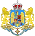 | نگهدارها | یک عقاب زرد که به منقار صلیب کلیسای ارتدکس و به چنگال سمت راست شمشیر و به چنگال سمت چپ گرز دارد در وسط آن یک چهار قسمتی و جود دارد که هر یک نشان قسنتی از رومانی است اول:والاچیا ، دوم:مولدووا ،سوم: التنیا و بانات،چهارمترانسیلوانی به همراه دوبروگا |