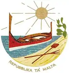 هفت ماه پس از آنکه مالت تبدیل به جمهوری شد نشان ملی دوباره تغییر کرد و برخی نمادهای مالت مانند یک قایق سنتی مدیترانه ای و یک کاکتوس افزوده شد. دام مینتوف در ۱۹۶۴ اصرار به تغییر نشان ملی داشت چون بر این باور بود که وجود تاج بر روی نماد به معنی حکومت پادشاهی است و در حکومت جمهوری جایی ندارد.[2]