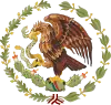 این نشان یا علامت دولت یک عقاب طلایی مکزیکی را به تصویر میکشد که بر روی یک کاکتوس در حال خوردن یک مار است. این نشان به بنیاد شهر تنوشتیتلان و تمدن آزتکها بر میگردد. آزتکها در انتظار به پیش آمدن یک پیشگویی باستانی بودند که قبیلههای سرگردان در آن زمان به دنبال آن بودند، این پیشگویی از محل مورد نظر برای بنیاد یک شهر بزرگ که باید به دست آنان ساخته شد سخن میگفت. در جایی که یک عقاب در حال خوردن یک مار، بالای یک کاکتوس نشسته باشد. این نشان به طور رسمی در مهر ایالات متحدهٔ مکزیک و همچنین دولت فدرال، ایالتی و شهری به کار گرفته میشود.