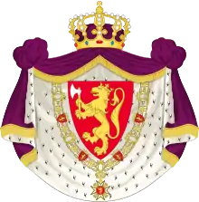 نشان ملی نروژ یک شیر زرین ایستاده بر روی یک زمینهٔ قرمز است درحالی که تاجی زرین بر سر دارد و تبری با تیغهٔ نقره در دست. شاهان و مشاورانشان، اعضای مجلس، و قاضیهای رده بالا اجازهٔ داشتن این نشان را دارند. این سه دسته از افراد بر پایهٔ قانون اساسی نروژ، سه قدرت اصلی اند.
