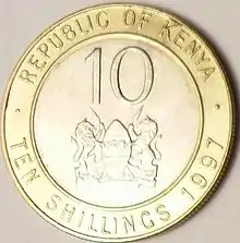 نماد ملی کنیا در پشت یک سکه ۱۰ شیلینگی کنیا
