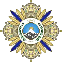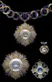 نشان شامل یک گردنبند به شکل حلقههای آبی و طلایی، مدال،یک حمایل پهن به رنگ آبی با دو خط طلایی و یک ستاره که روی سینه نصب میشود است.