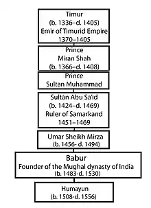 - پدربزرگ: عمرشیخ میرزای دوم