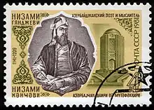 جمالالدین ابومحمّد الیاس بن یوسف بن زکی بن مؤیَّد، متخلص به نظامی و نامور حکیم نظامی (زادهٔ ۵۳۵ هـ. ق در گنجه[4][5] – درگذشتهٔ ۶۰۷–۶۱۲ هـ. ق) شاعر و داستانسرای ایرانی[6][7][8][9][10][11] پارسیگوی در سده ششم هجری (دوازدهم میلادی)، که بهعنوان صاحب سبک و پیشوای داستانسرایی در ادبیات پارسی شناخته شدهاست.[12] آرامگاه نظامی گنجوی، در حاشیه غربی شهر گنجه قرار دارد. نظامی در زمرهٔ گویندگان توانای شعر پارسی است، که نهتنها دارای روش و سبکی جداگانه است، بلکه تأثیر شیوهٔ او بر شعر پارسی نیز در شاعرانِ پس از او آشکارا پیداست. نظامی از دانشهای رایج روزگار خویش (علوم ادبی، نجوم، فلسفه، علوم اسلامی، فقه، کلام و زبان عرب) آگاهی گستردهای داشته و این ویژگی از شعر او به روشنی دانسته میشود. روز ۲۱ اسفند در تقویم رسمی ایران روز بزرگداشت نظامی گنجوی است.
