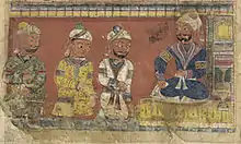 ![]() نظامالدین اولیا و سه مرید، در برگی از خمسهٔ امیر خسرو دهلوی - حدود ۱۴۵۰ میلادی | |