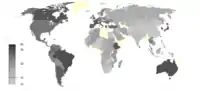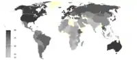 شاخص آگاهی کشورها از دانستن "چیزی" یا "بسیار" در مورد گرم شدن کره زمین خبر دادهاند. مناطق تاریک نشانگر تعداد بیشتری از افراد آگاه است ، رنگ زرد حاوی دادهای نیست.