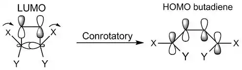 یک واکنش الکتروسیلی، واکنشی است که طی آن شامل بهطور خالص یک پیوند پای از بین میرود و در ادامه یک پیوند سیگما به همراه تشکیل یک حلقه رخ میدهد. این واکنشها بر اساس چرخش اوربیتالی بهپیش میروند که به دو صورت هستند: چرخش همسو/همجهت (Conrotatory) و چرخش غیرهمسو/غیرهمجهت (Disrotatory). با کمک نظریه اوربیتال مولکولی میتوان پیشبینی نمود که بر اساس آرایش اوربیتال مولکولی در مولکول مورد نظر، کدام یک از این روشهای چرخش در شرایط انجام واکنش (حرارتی/نوری) مجاز است.