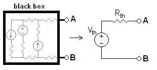 معادل کردن عناصر داخل جعبه با مدار معادل تونن آن: هر جعبه سیاهی که تنها حاوی مقاومت، و منابع ولتاژ، و جریان باشد میتواند با کمک یک مدار معادل تونن که از یک منبع ولتاژ معادل در اتصال سری با مقاومت معادل تشکیل شده، جانشین شود.