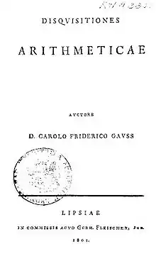 یکی از کار های بنیادین در نظریه جبری اعداد، کتابی با نام تحقیقاتی در حساب (با عنوان لاتین: Disquisitiones Arithmeticae) است که به زبان لاتین[4] توسط کارل فردریش گاوس در ۱۷۹۸ نوشته شد، زمانی که او ۲۱ ساله بود و اولین چاپش مربوط به ۱۸۰۱ زمانی که او ۲۴ ساله بود صورت گرفت. در این کتاب، گاوس نتایج مختلف در نظریه اعداد را که توسط ریاضیدانانی چون فرما، اویلر، لاگرانژ و لژاندر بدست آمده بودند را گرد هم آورده و نتایج مهم جدیدی از خودش نیز بدان افزود. قبل از این که این کتاب منتشر شود، نظریه اعداد عمدتاً شامل مجموعه ای از قضایا و حدس های منزوی بود. گاوس کارهای پیشینیان خود را به همراه کار اصیل خویش گرد هم آورد و در یک چارچوب نظام مند، شکاف ها را پر کرده، اثبات های بی معنا را معنا بخشید و موضوع مورد نظر را به طرق مختلف گسترش داد.