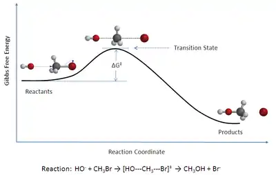 نظریه حالت گذار(به انگلیسی: Transition state theory) نظریه ای در سینتیک شیمیایی است که چگونگی انجام یک واکنش شیمیایی بین مواد واکنش دهنده و تولید فرآورده را توصیف میکند.در این نظریه مفهومی فرضی به نام حد واسط یا کمپلکس فعال معرفی میشود که عبارت است از ماده ای با سطح انرژی بالا که در آن پیوند های مواد واکنش دهنده در حال سست شدن و پیوندهای مواد فراورده در حال تشکیل است.با استفاده از نمودار مربوط به این تئوری میتوان مقدار انرژی فعال سازی واکنش، آنتالپی واکنش و نوع واکنش(گرما گیر یا گرماده بودن)را تشخیص داد.[1] این نظریه توسط احمدزویل شیمیدان مسلمان مصری در سال1999 عنوان شد که به این علت موفق به دریافت جایزه نوبل شیمی گردید.در این نظریه برخی از نارساییهای نظریه "برخورد" برطرف شده از جمله اینکه این نظریه افزون برفاز گازی برای فاز محلول نیز قابل استفاده است. در این نظریه هنگام برخورد واکنش دهندهها مولکولها مدت زمانی کنار هم قرار میگیرند در این حالت پیوندهای اولیه سست شده و پیوندهای تازه تشکیل میشوند.به حالتی که در آن همزمان پیوند اولیه در حال شکستن و پیوند جدید در حال تشکیل است که به این حالت،حالت گذار یا پیچیده فعال میگویند. پیچیده فعال ذره بسیار ناپایداری است که در حین واکنش نمیتوان آن را جداسازی و شناسایی کرد. نخستین بار احمد زویل ادعا کرد ک عمر پیچیده فعال در حدود یک فمتو ثانیه است. در نظریه گذار سرعت واکنش با انرژی فعالسازی واکنش رابطه عکس دارد.