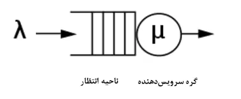 شکل 2. یک صف با یک سرور، نرخ ورود λ و نرخ خروج μ.