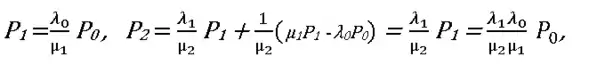 معادله حالت 1 (از طریق حالت 0): µ1P1 = λ0P0