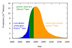 در سال ۱۹۵۶ امکینگ هوبرت نظریهای به نام نظریه نفت در نقطه اوج را ارائه داد که در آن اشباع استخراج نفت از منابع نفتی در آمریکا را بین سالهای ۱۹۶۵ تا ۱۹۷۰ پیشبینی کرد.[1] مطابق این نظریه که مبتنی بر یک نمودار لجستیکی بود میزان تولید دریک منبع با ذخایر محدود بهطور کلی از یک توزیع نرمال متقارن مبتنی بر محدودیت در استخراج و فشار بازار پیروی میکند. اصلاحاتی بر مدل لجستیکی این نظریه برای کاربرد عملی آن صورت گرفت ولی بهطور کلی در انواع مختلف این اصلاحات صورت گرفته، موضوع توقف در افزایش تولید و کاهش عرضه ثابت میباشد.