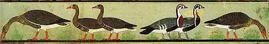 این آرامگاه همچنین برای اثری مشهور به «غازهای میدوم» شناخته شدهاست؛ اثری که امروزه در موزه مصر در قاهره نگهداری میشود. در این نگاره که به روش گفته شده و با بتونه رنگی ساخته شده شش غاز به تصویر کشیده شدهاند؛ سه تا از آنها به چپ و سه تای دیگر به راست متمایلند. غاز جلویی در هر یک از دو دسته سر به سوی پایین دارد و در حال چریدن است، دو غاز دیگر سرهایشان به بالا است. عدد ۳ در نوشتار مصر باستان نماد زیادی و فراوانی بودهاست و این گروهها نماد تعداد زیادی غاز هستند. به خاطر ویژگیهای زیباییشناختی این اثر، از آن به عنوان یک شاهکار هنری یاد میشود.[1]