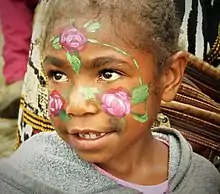 نقاشی روی صورت کاربرد هنری رنگ غیر سمی در صورت فرد است. این عمل مربوط به دوران پارینه سنگی است و برای اهداف آیینی، مانند مراسم بزرگسالی و مراسم تشییع جنازه و همچنین شکار استفاده میشدهاست. از موادی مانند رس، گچ یا حنا استفاده شدهاست که بهطور معمول با رنگدانههایی که از برگ، میوه یا توت استخراج میشود و گاهی اوقات با روغن یا چربی مخلوط میشود.[8]