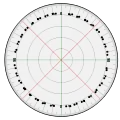 اجزای درجه: همان گونه که میدانید معمولاً هر واحد دارای اجزایی میباشد. درجه نیز به عنوان یک واحد اندازهگیری دارای اجزایی میباشد که عبارتند از دقیقه و ثانیه.(این اجزا گاهی آرک دقیقه:Arc minute و آرک ثانیه:Arc second نیز گفته میشوند) هر دقیقه برابر است با یک شصتم درجه.