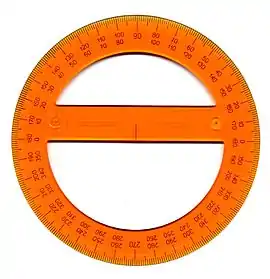 پس به این ترتیب در این مقیاس، زاویه تمام صفحه که یک دور کامل است برابر ۳۶۰ درجه و زاویه نیم صفحه برابر ۱۸۰ درجه است.