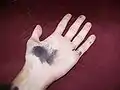 ترکیبات نقره به آهستگی توسط بافتهای بدن جذب میشوند و پیگمانهایی آبی یا سیاه در پوست ایجاد میکنند.