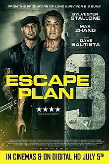 - "Sylvester Stallone Is 'So Proud' Of Escape Plan 3 Success, Since It Was Made In Just 17 Days". CinemaBlend. 2019-07-14. Retrieved 2019-11-17.