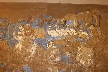 نقش افراسیاب یا نقاشی افراسیاب یک نمونه نادر از هنر ایرانی در سغد است. این نقاشی در سال ۱۹۶۵ در زمانی که مقامات محلی قصد داشتند یک جاده در وسط تپه افراسیاب بسازند، کشف شد. در حال حاضر یک موزه ویژه بر روی تپه افراسیاب احداث شده است. قدمت این نقاشی به اواسط قرن ۷ قبل از میلاد بازمیگردد. در چهار دیوار از اتاق یک خانه خصوصی، سه یا چهار کشور مختلف همسایه آسیای مرکزی کشیده شده است. بر روی دیوار شمالی، چین (جشنواره چینی، با ملکه بر روی یک قایق، و شکار امپراتور)، در جنوب دیوار سمرقند (سوگ سیاوش)، بر روی دیوار شرقی هند (به عنوان زمین از ستاره شناسان و از کوتوله، اما بسیاری از نقاشی از میان رفته است). موضوع بر روی دیوار اصلی، دیوار غربی رو به ورودی بین متخصصان مورد بحث است. سربازان سغدی که سفرای کشورهای مختلف را اسکورت میکنند (کره، چین، امیرنشینهای ایران و غیره). در نقاشی سغدی، خدایان همیشه در بالای دیوار اصلی به تصویر کشیده میشود. در اوایل سال ۲۰۱۴، فرانسه اعلام کرد که تأمین مالی برای بازسازی نقاشی افراسیاب را بر عهده میگیرد.[1]