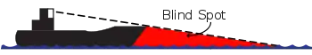 نقاط کور در جلوی کشتیها و قایقها و سایر شناورها وجود دارند.[4] افزایش سرعت قایق باعث بالارفتن جلوی آن و افزایش دامنه نقاط کور مقابل میشود.